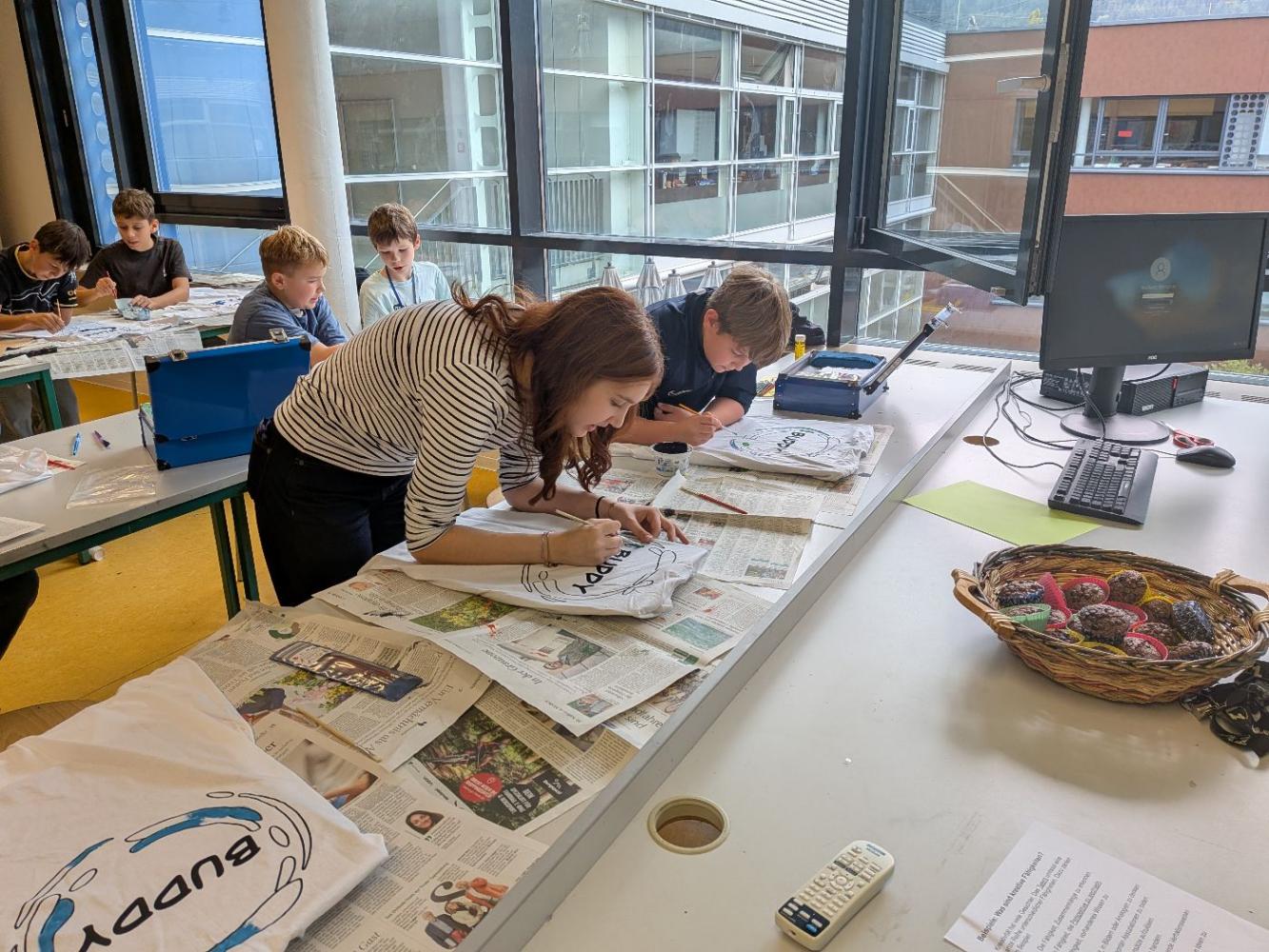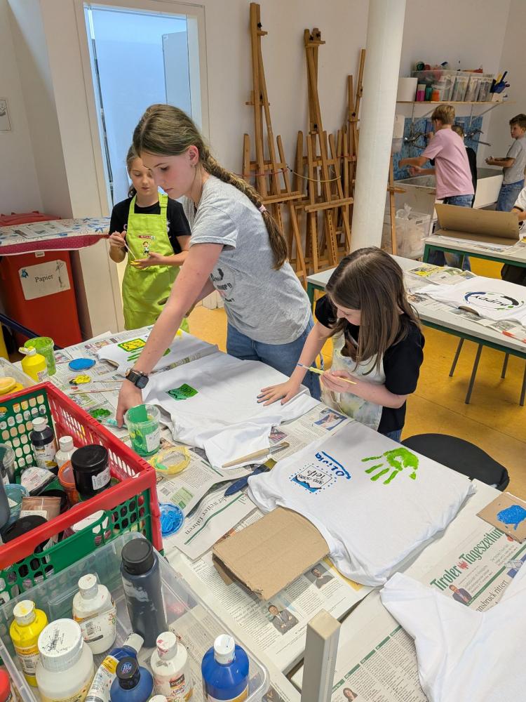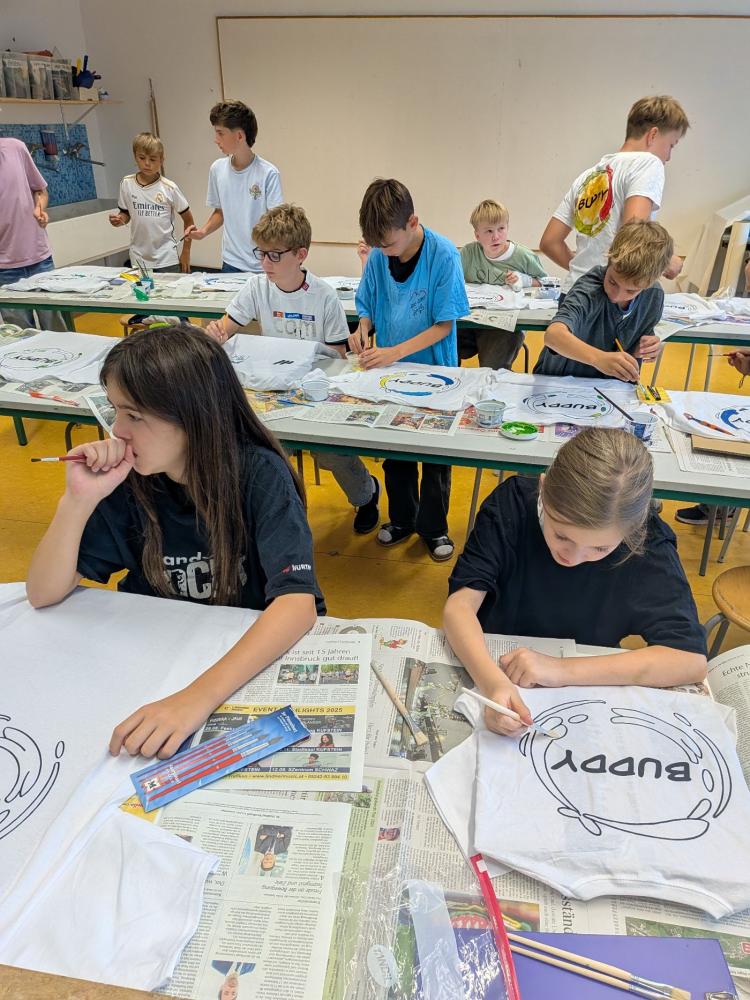 Gestartet hat die Klasse 1a des BRG Telfs mit dem bemalen ihrer Buddy T-Shirts gemeinsam mit Ihren Buddys aus der 3c.