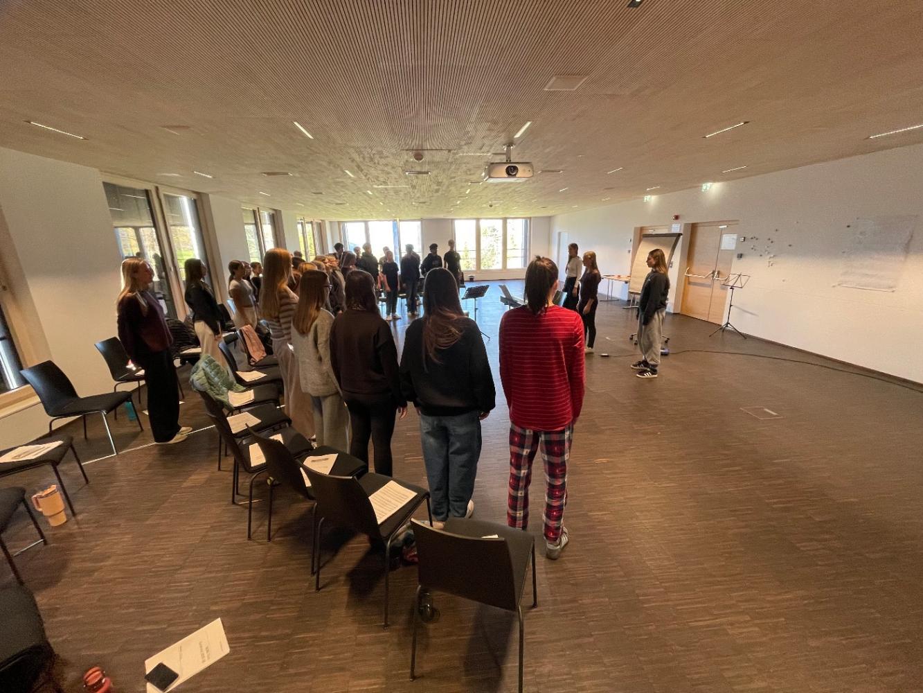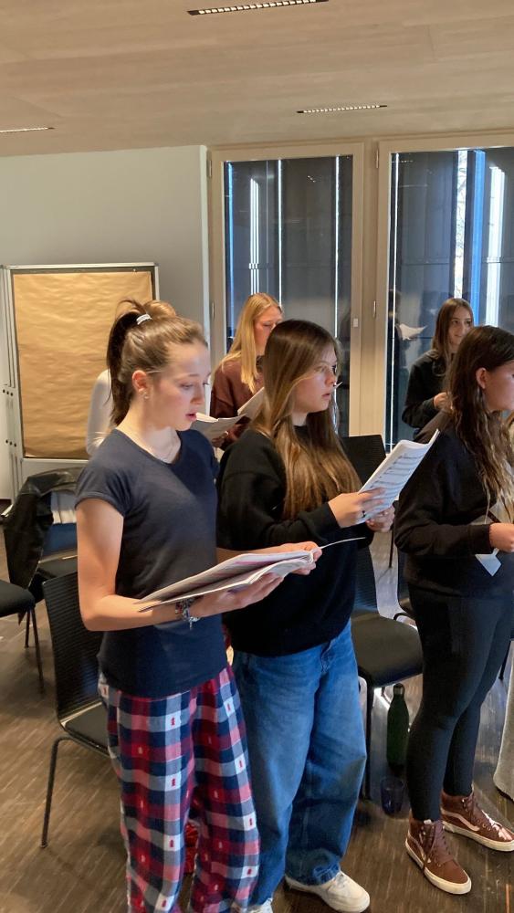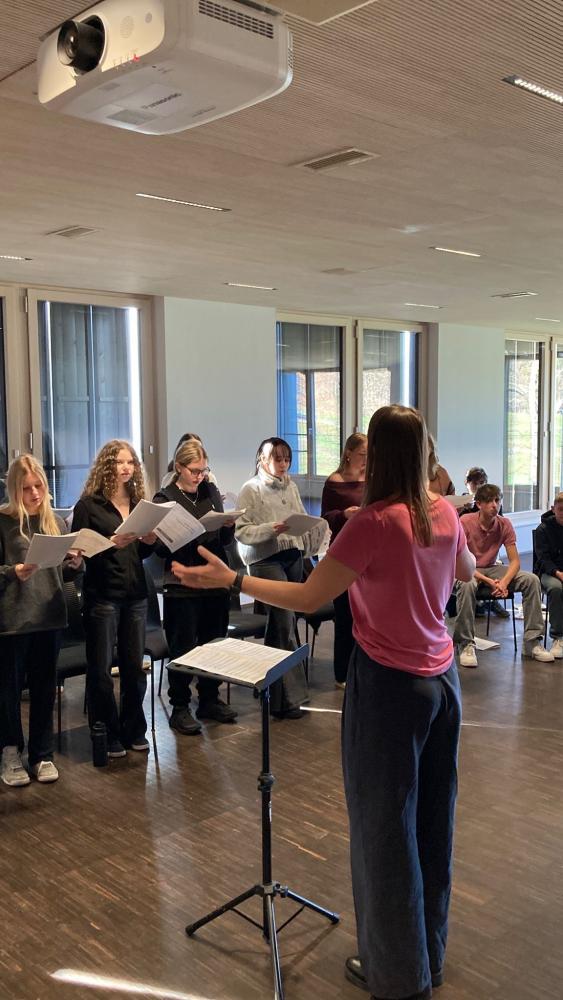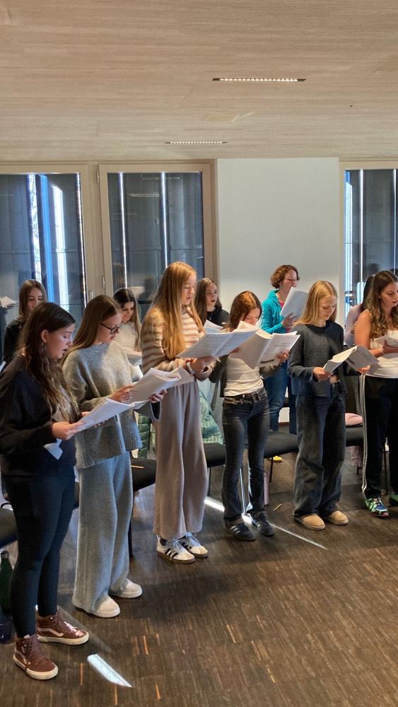32 sangesfreudige Teenager und 9 Lehrpersonen in abwechselnder Präsenz, probten sich durch unterschiedlichste Genres, von Klassik über Pop bis hin zur Weltmusik. Manches wurde a-cappella gesungen, manches mit einem schwungvollen Klavierpart oder auch Djembe oder Cajon unterlegt.
