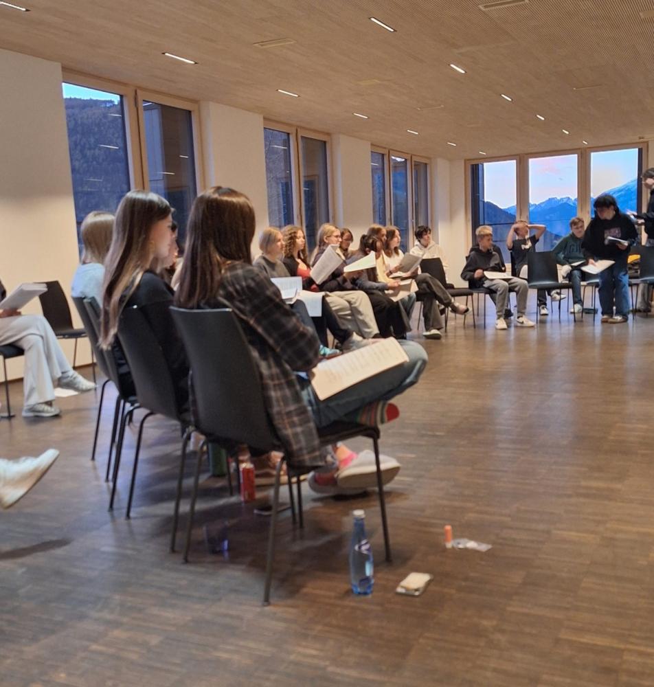 Direkt im Anschluss an die wohlverdienten Herbstferien, startete der Musikzweig des BORG Telfs mit zwei Chortagen in den nächsten Abschnitt des Schuljahres. Die gemeinsame Zugfahrt nach Matrei am Brenner bildete den Beginn unserer musikalischen Tage und auf dem etwa 30-minütigen Aufstieg zum Bildungshaus hatten die Schüler:innen genügend Zeit, sich über ihre Erlebnisse aus den Ferien auszutauschen.