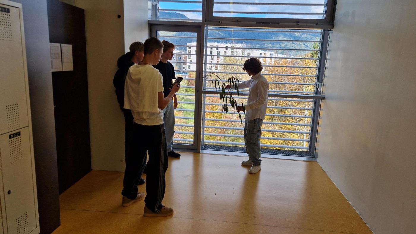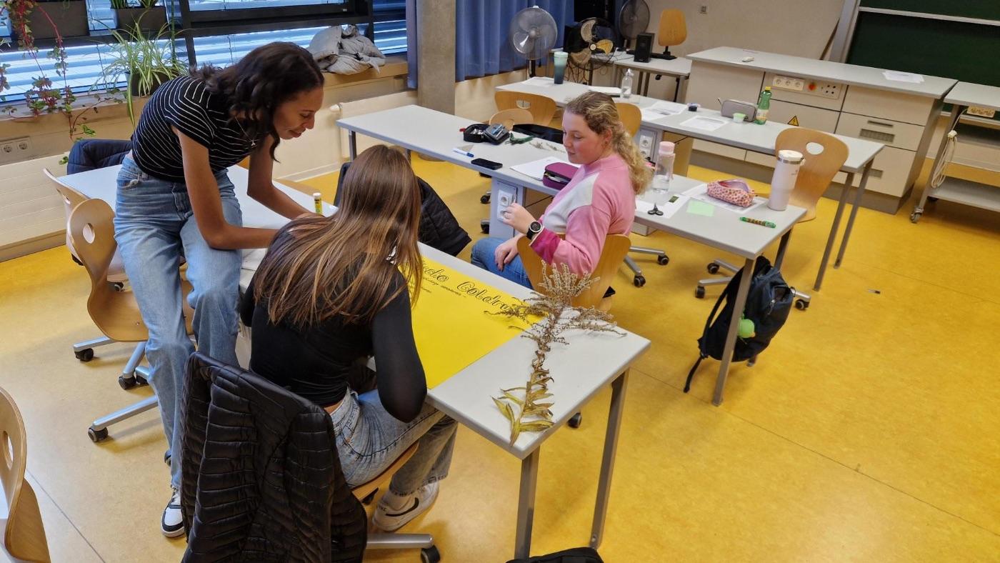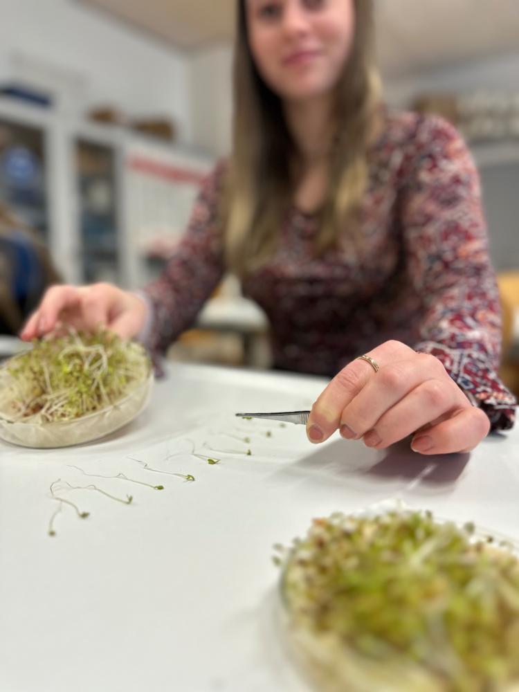 Anschließend ging es für die Schüler:innen ins Gelände, wo sie die invasive Kanadische Goldrute und das ebenfalls invasive Drüsige Springkraut sammelten. Das gesammelte Material wurde im Labor zu einem Sud extrahiert – dem Hauptakteur eines spannenden Experiments mit Kressesamen.