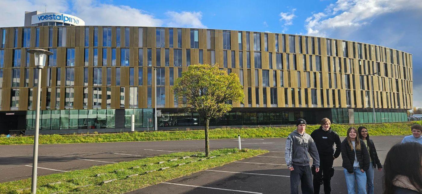 Zuerst haben wir uns den Hochofen angesehen, bei dem Eisenerz zu flüssigem Roheisen umgewandelt wird. Erstmals wurde uns die Produktion durch ein animiertes Video vorgestellt, nachher hatten wir sogar das Glück, dass ein Abstich auf unserer Seite stattgefunden hat und wir es live auch sehen konnten. Außerdem wurden uns dazu Aufnahmen gezeigt. Dann sind wir mit dem Bus zum Warmwalzwerk gefahren, welches wir ebenso genauer angesehen haben. Hier wurde uns der Vorgang näher gezeigt, sowohl live als auch animiert: das Erwärmen von Brammen und das anschließende Abwalzen zu Blechen, wobei der Stahl durch die Hitze verformbar ist und das Gefüge verfeinert wird.