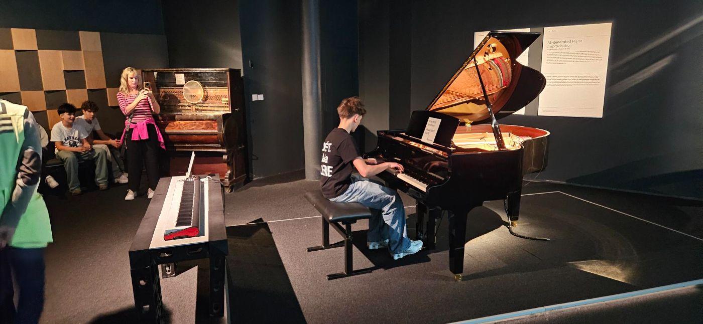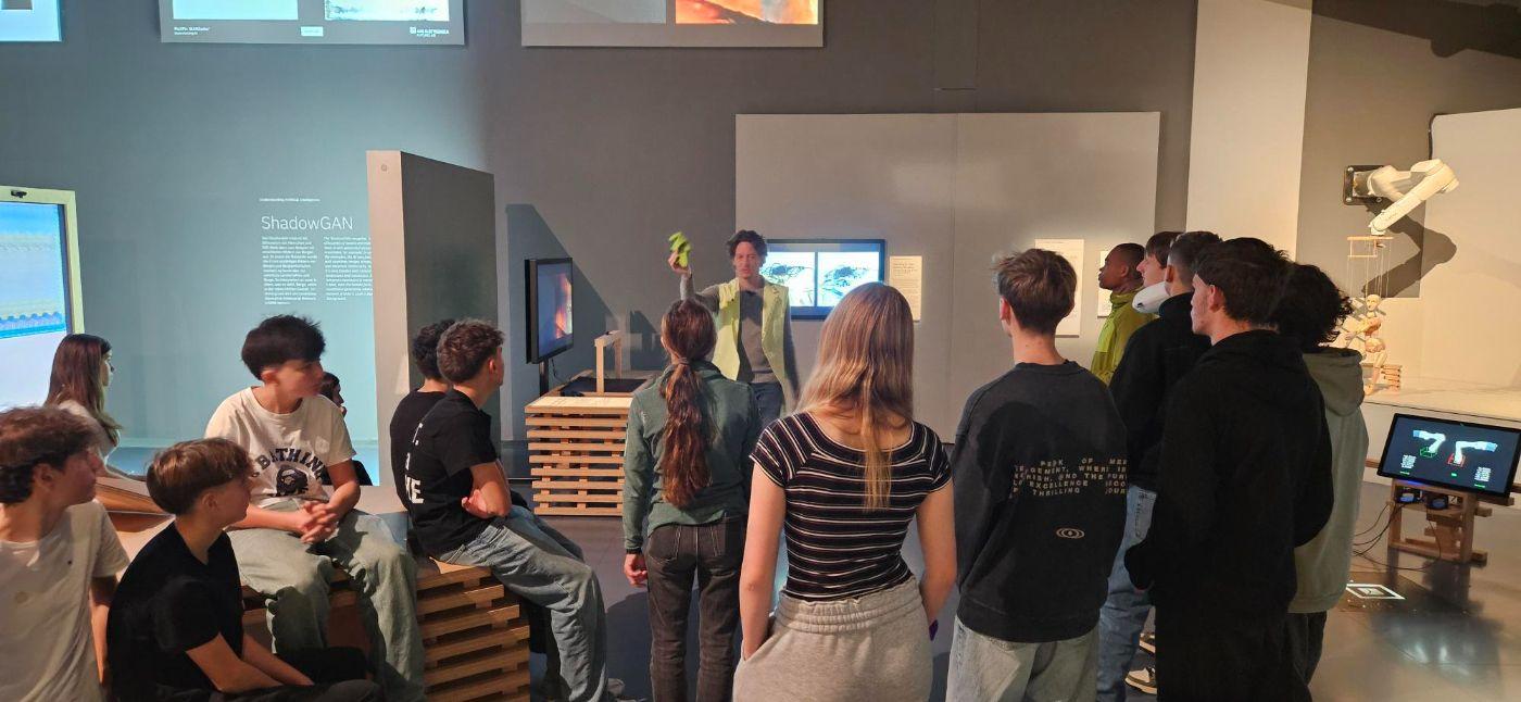 Wir besuchten das Ars Electronica Center in Linz, ein Museum für Kunst, Technologie und Gesellschaft. Dort lernten wir viel über künstliche Intelligenz und Robotik. Gleich am Anfang sahen wir eine Kamera, die Gegenstände erkannte - dabei erfuhren wir, dass Computer keine echten Kenntnisse haben, sondern nur Muster erkennen. Besonders spannend war ein Roboter, der über Sensoren auf Menschen reagierte, und ein Hunderoboter, der herumsprang. Im oberen Stock ging es um Umweltfaktoren und wie Veränderungen sich gegenseitig beeinflussen. Zum Schluss sahen wir ein selbstspielendes Klavier, das mithilfe von KI-Musik im Stil berühmter Komponisten wie Bach erzeugte und in einem eigenen Raum, wo wir von mehreren Projektoren 3D-Videos zu sehen bekommen haben.